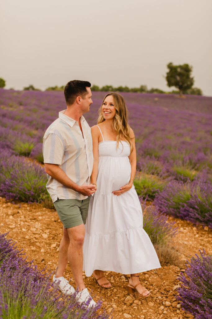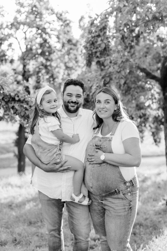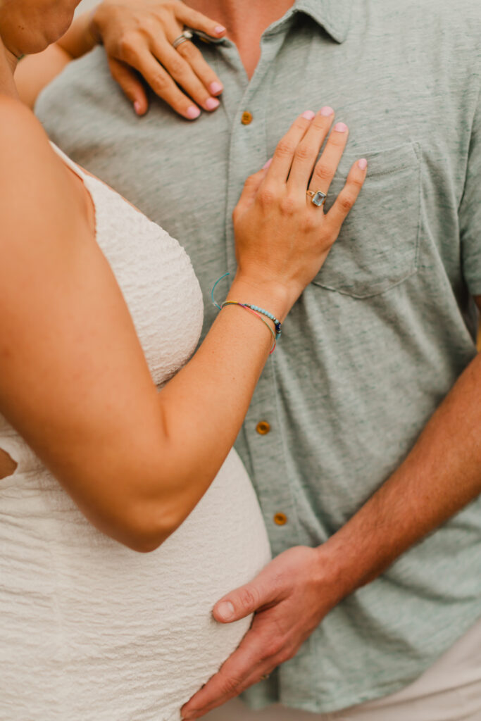 For a maternity session, I recommend scheduling your photos once your baby bump is visible and well-defined. Most clients book their session around seven months of pregnancy, as they still feel comfortable moving around while the bump is clearly showing.